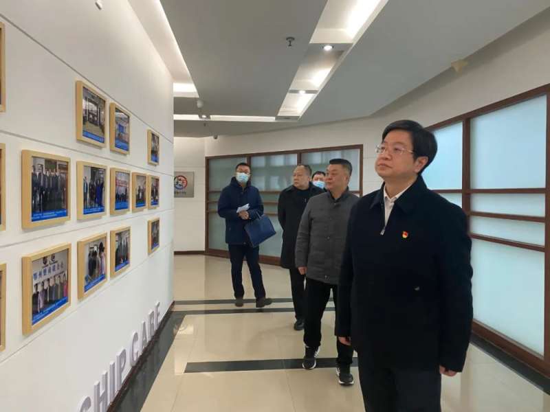徐劲松一行参观了商会办公场所布局及文化宣传“长廊”,对商会办公环境、党建、资源对接、人调、公益活动等进行了全面了解,同时就创建全省、全国“四好”商会工作进行具体指导。