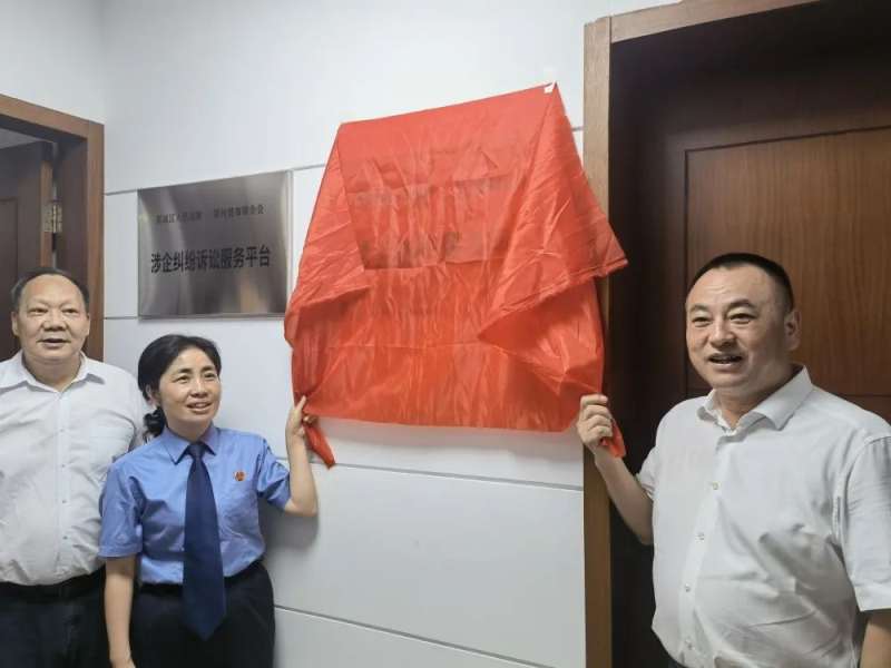 我会名誉会长叶佳斌和鄂城区人民检察院党组书记、检察长徐洁共同为“检企协作服务平台”揭牌。