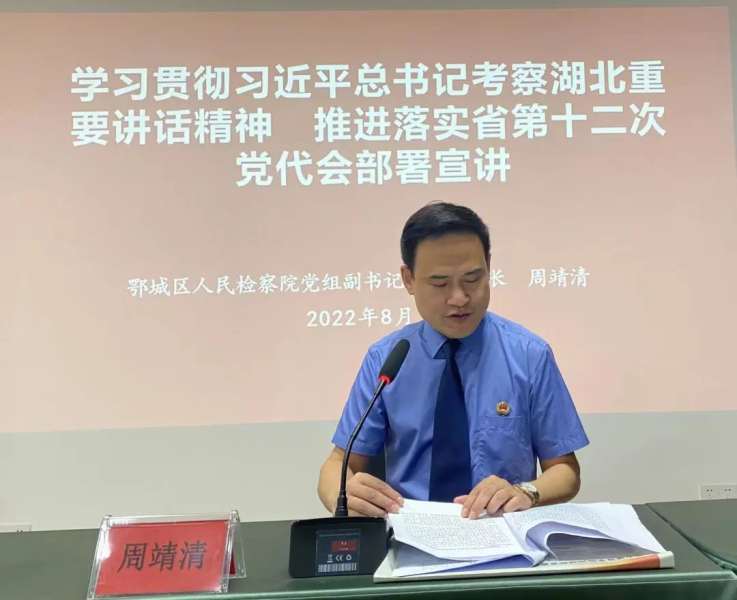 座谈结束,鄂城区人民检察院与鄂州楚商联合会召开联合支部主题党日活动,所有参会人员重温入党誓词,鄂城区人民检察院党组副书记、副检察长周靖清带领大家学习习近平总书记考察湖北重要讲话精神,作了题为《学习贯彻习近平总书记考察湖北重要讲话精神 推进落实省第十二次党代会部署》的宣讲。