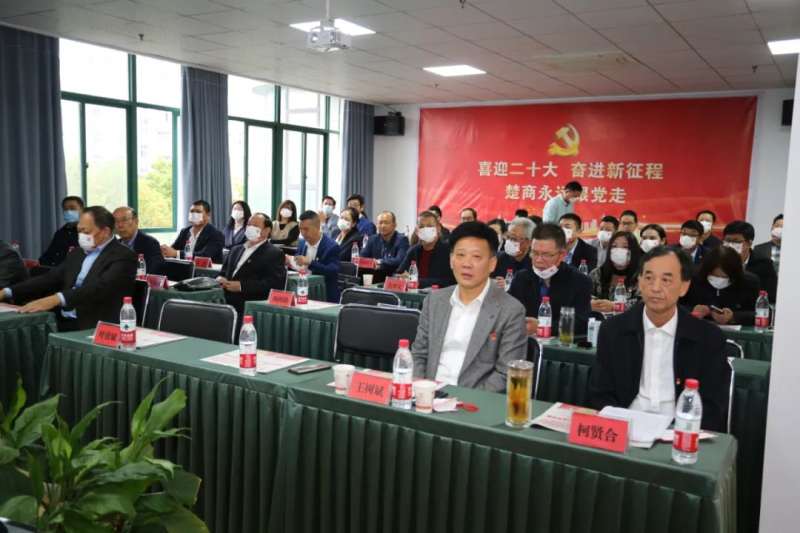 建功新时代,奋进新征程。为深入学习贯彻落实党的二十大精神,10月27日,我会开展以“学习贯彻党的二十大精神,推动党建会建再上新台阶”为主题的学习活动,商会各级领导和企业代表60余人参加学习。