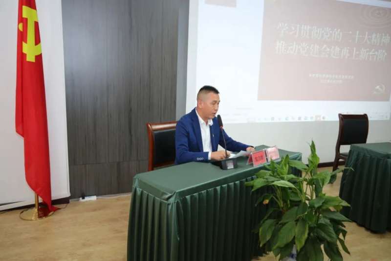 商会党建指导员、党总支书记金明健带领大家共同学习二十大精神,对习近平总书记报告的金句进行解读,辅导大家学习人民日报社论,同时结合商会实际提出四点要求:一是要积极开展形式多样的学习活动,各会员单位要组织全员学习,引导职工看报、看新闻,关心政治,提高站位,紧跟形势;二是要积极参加上级部门组织开展的学习、培训和社会实践活动,将二十大精神学深学透,入心入脑;三是要积极做好本职工作,发展好事业,以实际行动向二十大献礼;四是要坚决与党中央和上级党组织保持高度一致。