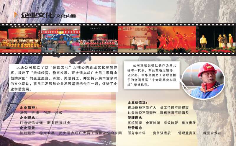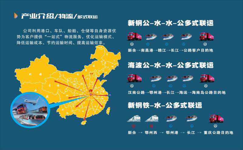 多年来在市委市政府及各级部门的关心支持下,大通公司经过运营和发展,已逐步建立起其他物流企业所不具备的,以品牌、港口、运输、仓储、设备、信息、规模等资源为一体,各产业、各单位协调联动,区域性完整的物流产业体系,可以根据客户需求,为其提供优质可靠的多式联运、“一票到底”和综合服务。