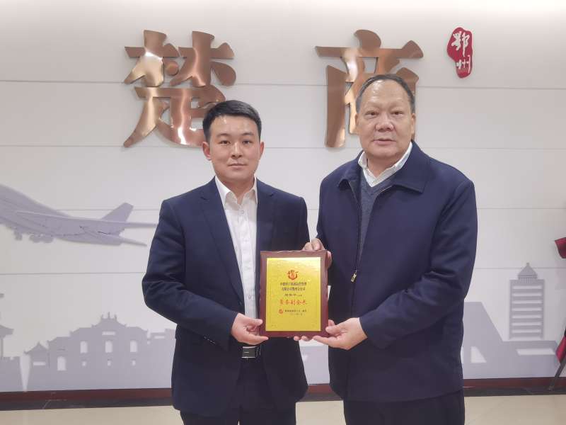 2023年1月9日,执行会长张新华为常务副会长单位中建科工集团运营管理有限公司鄂州分公司会展运营总监雷正文授牌。