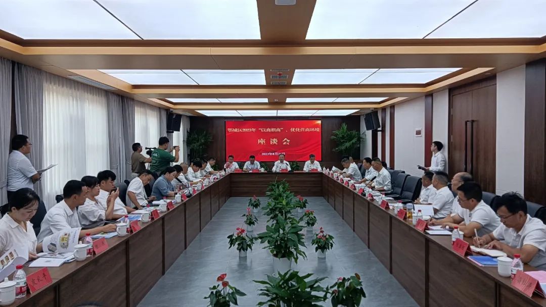 8月26日,鄂城区召开2023年商会“以商招商”、优化营商环境座谈会,全区10家乡镇商会及特邀商会共50余名企业家出席会议。