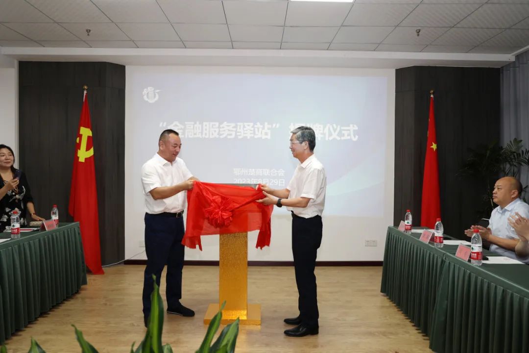 8月29日,鄂州楚商联合会高朋满座,热闹非凡。鄂州市政府副秘书长、二级巡视员刘绪武,市地方金融工作局党组书记、局长秦剑涛,中国人民银行鄂州市分行党委书记、行长尹峰,国家金融监管总局鄂州监管分局党委书记、局长翁翔,市工商联副主席、秘书长盛以茂,以及全市银行、证券、保险、担保机构主要负责人齐聚一堂,共同见证鄂州楚商联合会“金融服务驿站”隆重揭牌。