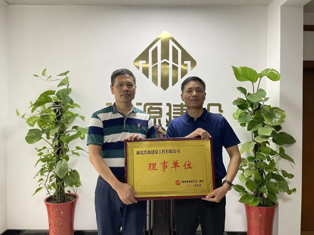 秘书长阳光照为湖北浩源建设工程有限公司董事长陈良浩授牌。