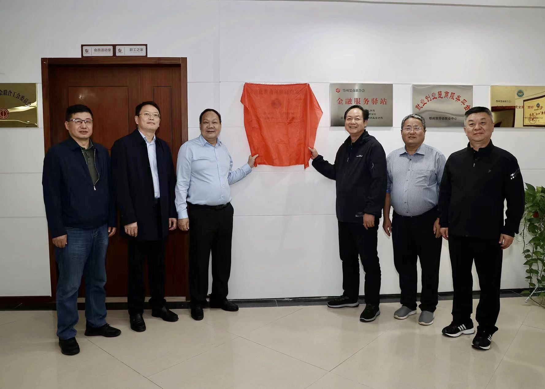 市委政法委执法监督科科长严鹏,商会秘书长阳光照,会员部刘琦、综合部刘丽琴,人调团队负责人叶创参加了揭牌活动。