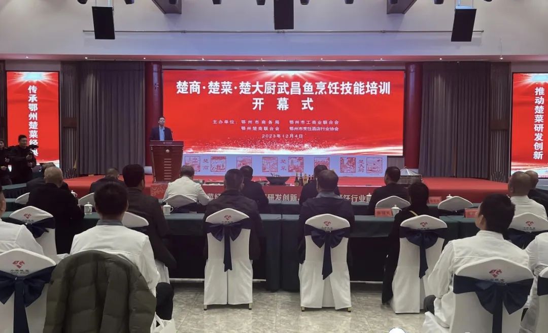 人间烟火,饕餮楚菜。12月4日,长城花园和宴大厅温暖如春,热闹非凡,中国顶尖烹饪大师们与鄂州楚商企业家、烹饪酒店行业协会会员企业负责人、厨师约200人齐聚一堂,拉开了“楚商·楚菜·楚大厨武昌鱼烹饪技能培训”、“寻味楚菜经典助力经济发展恳谈会”活动序幕。