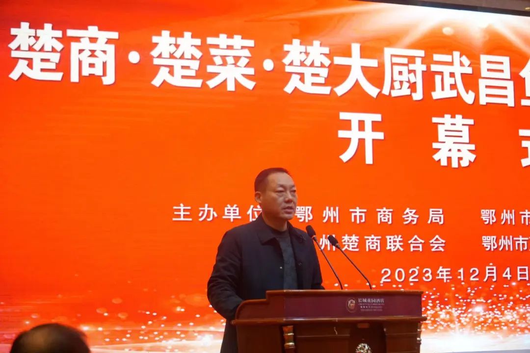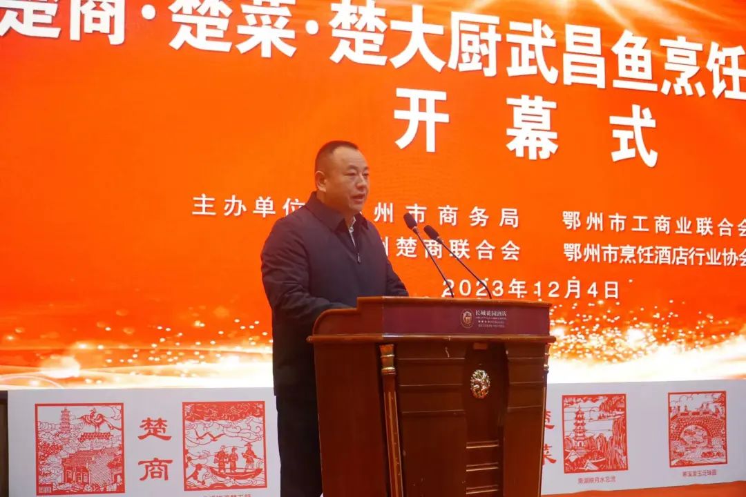 鄂州市烹饪酒店行业协会会长郑彦章,鄂州楚商联合会名誉会长叶佳斌,市商务局党组成员、副局长张维华,大师团队代表卢永良分别发表热情洋溢的致辞。