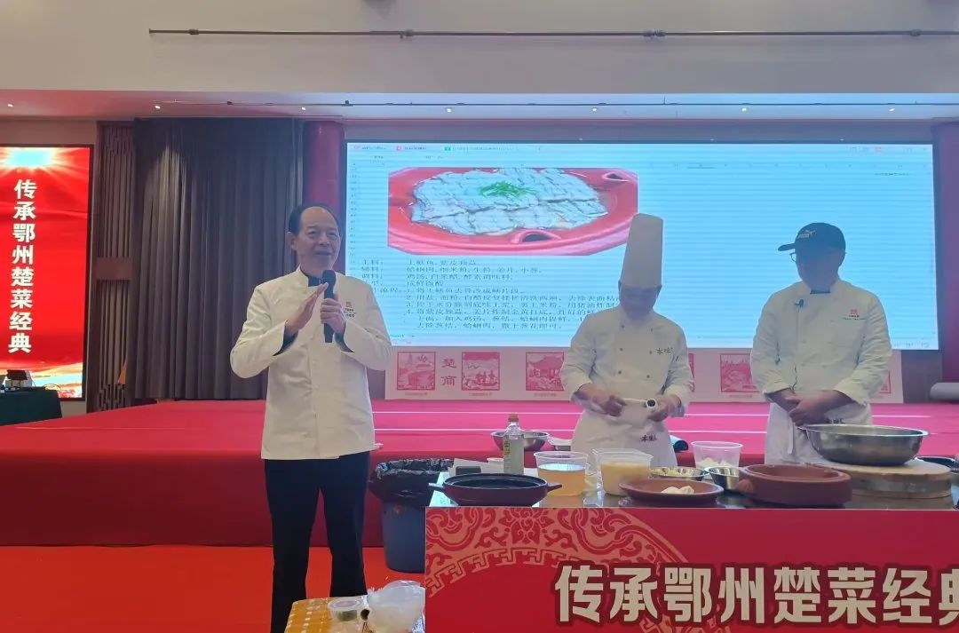 开幕式后,五位大师为全市厨师讲菜授课。中午时段套开“寻味楚菜经典 助力经济发展”恳谈会。每位大师分别现场讲解制作三道佳肴,粉蒸武昌鱼肚档、珍珠丸子、虾爆鳝、秭归血橙红酒奶酪谷饲牛肉、蟹汤葛仙米煨陈年花胶、鮰鱼肚煨关东参、酥炸时蔬丰收篮、稻香中华第一膀、清蒸土鳝、养生鮰鱼汤、醋椒粉蒸鮰鱼、红烧生态鮰鱼等高端菜品带来一场视觉、嗅觉和味觉的“饕餮盛宴”。参训厨师们纷纷表示,不仅学到了独特的烹饪技巧,而且更加深入了解楚菜文化,增进了与业内同行的交流和合作。