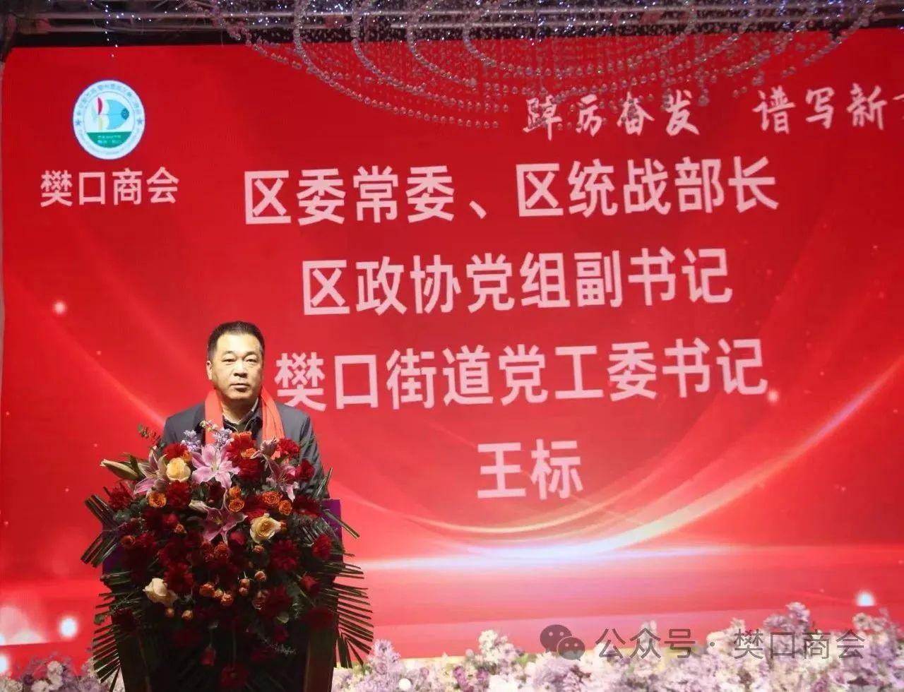 区委常委、统战部部长、樊口街道党工委书记王标在大会上致辞,他代表区委统战部、鄂城区樊口街道,向大会的召开表示热烈祝贺,并肯定了樊口商会在过去一年中所取得的成绩。他表示,商会要积极投身经济发展,利用好党和国家的各项扶持政策,努力做出新的成绩。同时加强与政府、企业和社会各界的合作,共同推动地区经济的繁荣发展。他强调,企业要抓住滨江科技新区建设发展的机遇,商会领导班子加强自身建设,提高服务会员的能力和水平,为商会的长远发展奠定坚实基础。