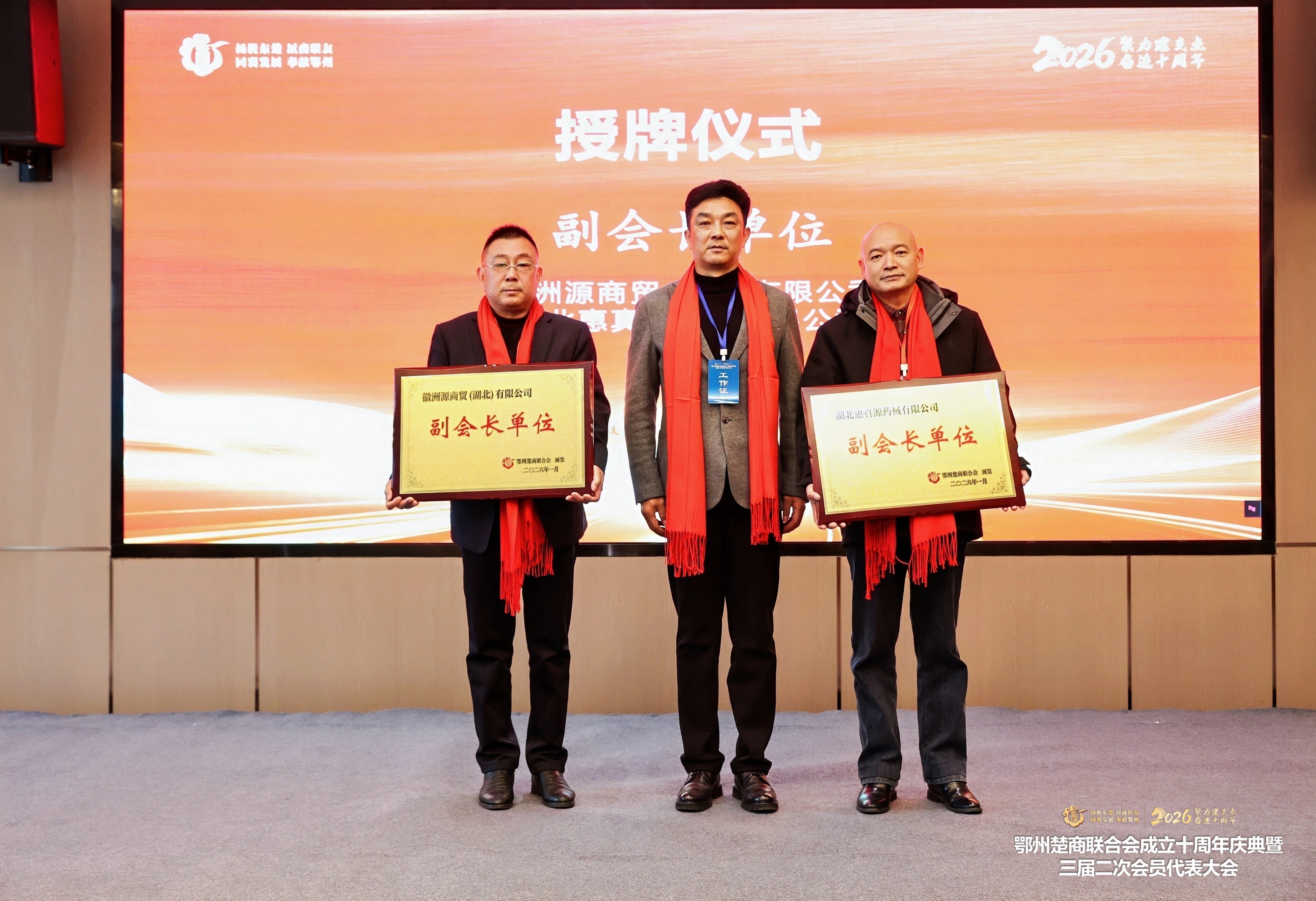 1月20日,我会党总支书记、执行会长叶祥元为湖北惠真源药械有限公司 董事长马建斌(右一)授牌 。